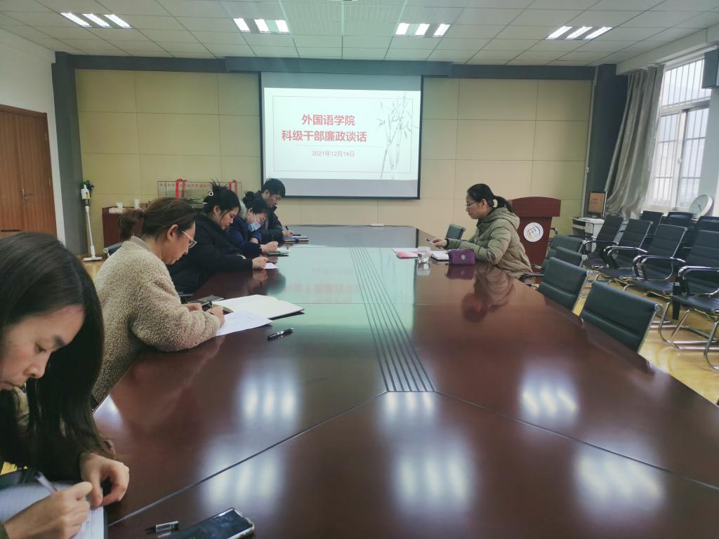 党委在学院517会议室进行科级干部廉政谈话。学院党委书记曲斌艳代表学院党委对学院所有科级干部进行了集体谈话。
