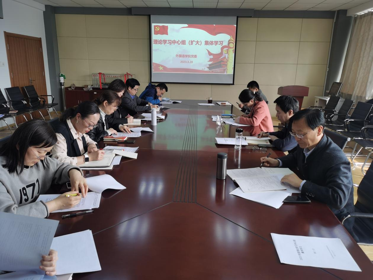 在集体学习环节,与会人员集中自学了中共中央办公厅发布的《关于在全党大兴调查研究的工作方案》,康宁领学了教育部高等教育司武世兴副司长在第七届全国高等学校外语教育改革与发展高端论坛上的讲话,曲斌艳领学了李兴伟书记在学校党的建设与思想政治工作领导小组(全面从严治党领导小组)工作会议上的讲话。在交流研讨环节,与会人员围绕“外语人才培养的机遇和挑战”进行交流,巫莉丽和张宪涛结合近期的参会感悟和学院发展的机遇与挑战进行了交流发言。