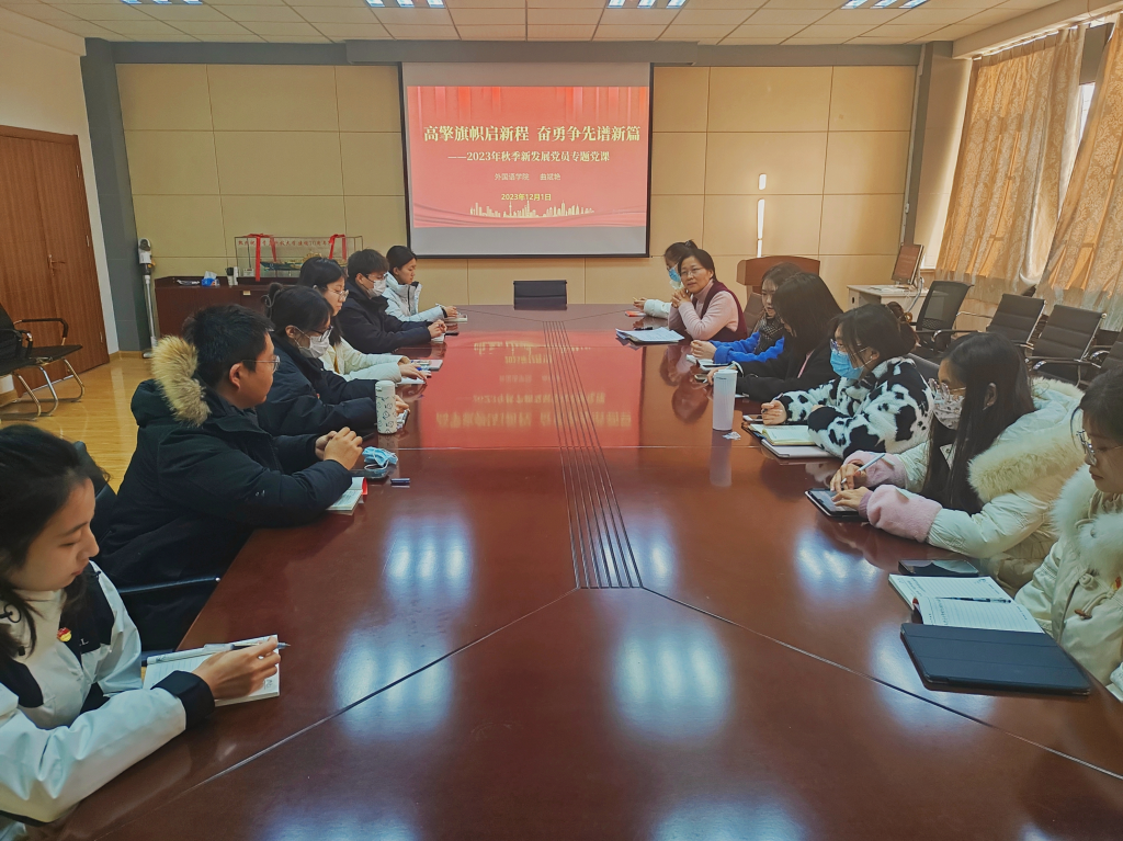 党委书记曲斌艳在学院517会议室为2023年秋季新发展党员讲授专题党课。