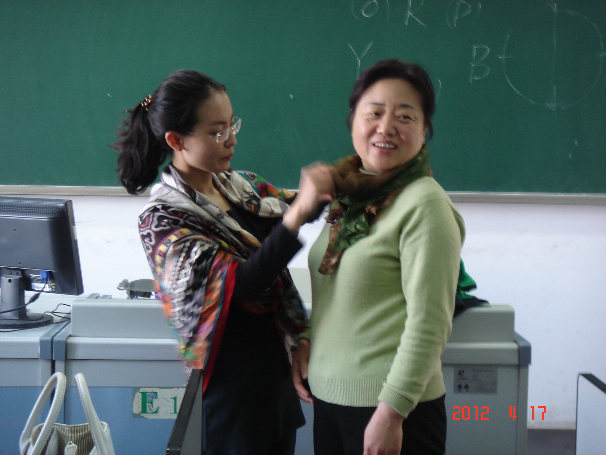4月17日中午,耽美小说 工会分会请来艺术学院的王斐然老师为学院的女老师们做了一次有关色彩搭配的交流讲座。王老师从服装的款式、面料、色彩开始,讲到服饰与体型的搭配;然后,给每位老师发了一张“自查表”,让大家分析适合自己的色调;接着,利用带来的围巾,王老师演示了几种丝巾的佩戴方式,以及各种方式适合的场合等,还为现场戴着丝巾的几位老师现场整理,让大家看到不同的佩戴方式所产生的不同效果!