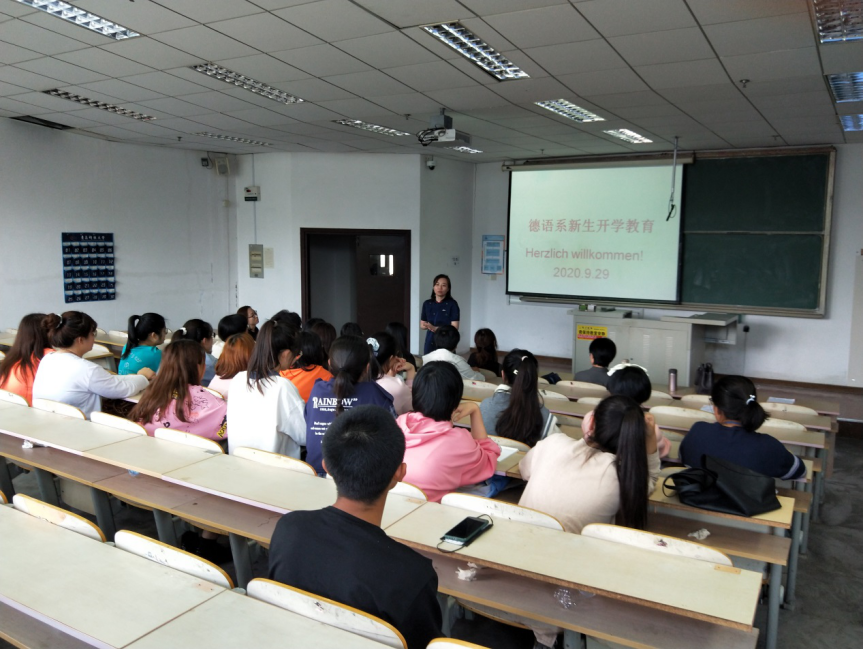 学科办主任许勤超对培养方案中设置的三个方向进行了详细的介绍,涵盖了方向课程的总体设置思路及各门课程的学习内容,并对人才培养方案中要求的其他选修学分提出了建议。俄语专业系主任曹静娴对新生四年的大学生活提出了总体要求和具体要求,并对未来发展给出了考研、出国留学、政府机关、事业单位、中外资企业、新闻媒体、外语教育以及中俄文化交流机构等建议。日语专业系主任王宁认为步入大学,不仅仅意味着学业道路的一个新阶段,更是人生道路中具有重大意义的新里程,并总结了学习外语的三个心得:“不用,就会丢”、“你不要孤单一人”、“语言是生动的”。朝鲜语专业系主任毕信燕就学科相关的等级考试做了详细讲解,并鼓励同学们尽早规划好大学生活,树立明确的目标。德语专业系主任巫莉丽对同学们提出了两点希望:树立学习目标,不负韶华;提升思维力,创新发展。同时,德语专业其他骨干教师也分别作了自我介绍,并与同学们分享了德语学习的经验。