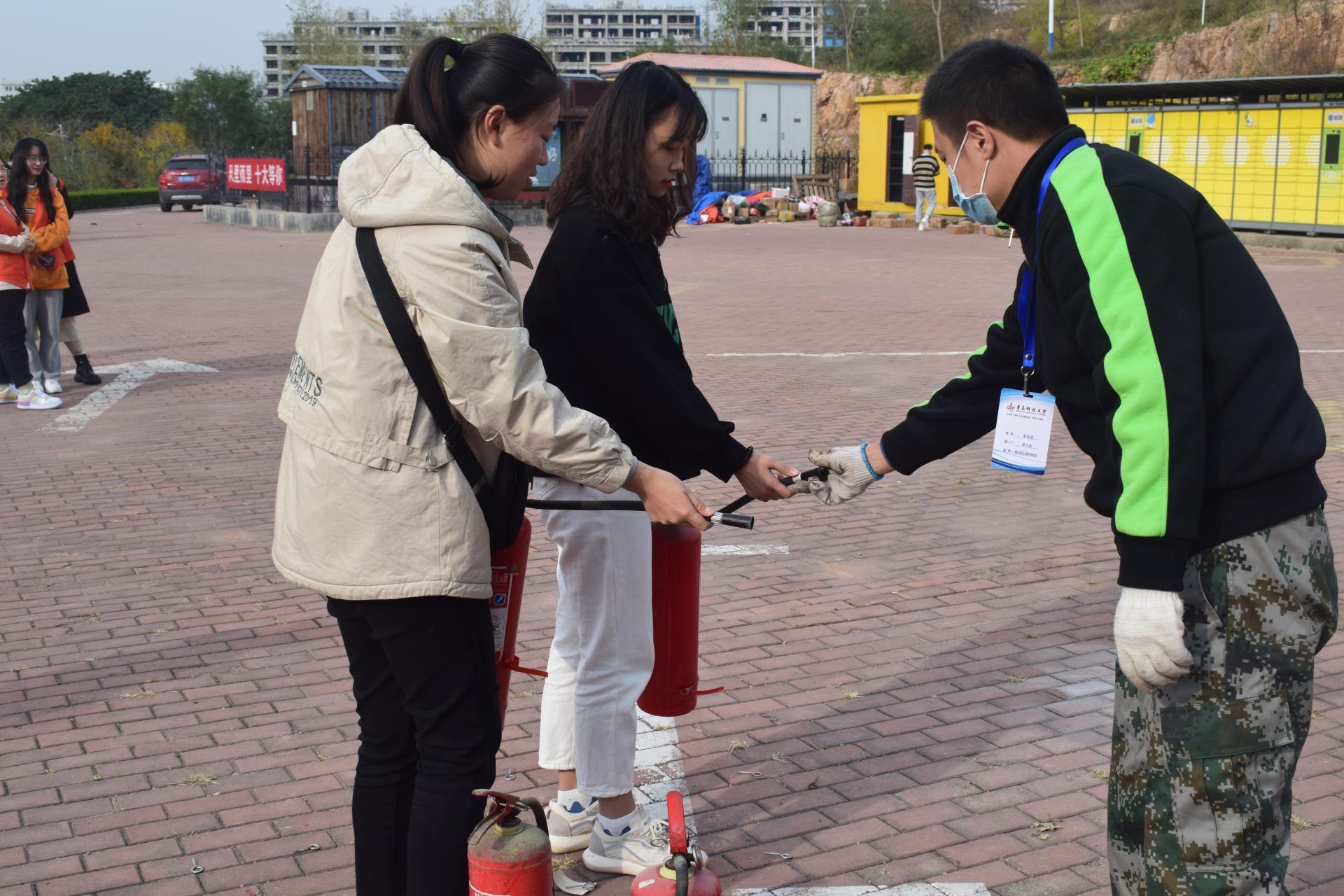 院长尹洪山为即将开展的消防演练致辞,宣布消防演练正式开始。安全保卫科赵淑东老师向参演学生介绍完善、系统的消防知识,用通俗易懂的语言向同学们阐述了火灾的危险性,深刻剖析了火灾发生的原因和预防措施。在北苑餐厅停车场,安全保卫科余全波老师为同学们演示灭火器使用维护方法及注意事项,同学们亲身体验了用干粉灭火器灭火的操作,正确、快速地完成了灭火过程。