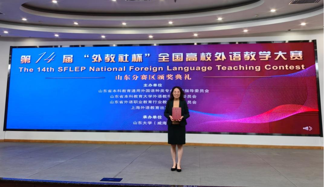 “外教社杯”全国高校外语教学大赛始创于2010年,是我国最早举办的全国性外语类教学赛事。大赛覆盖全国千余所高校,在中国高等教育学会正式发布的全国普通高校教师教学发展指数中,位列外语类赛事首位。本次比赛由山东省教育厅高等教育处发文,山东省本科教育通用外国语种类专业教学指导委员会、山东省本科教育大学外语教学指导委员会、山东省外语职业教育行业教学指导委员会、上海外语教育出版社主办,山东大学(威海)承办。比赛设本科大学英语组、本科英语专业组、高职公共英语组三个组别,共有来自全省110所高校143个团队参赛。