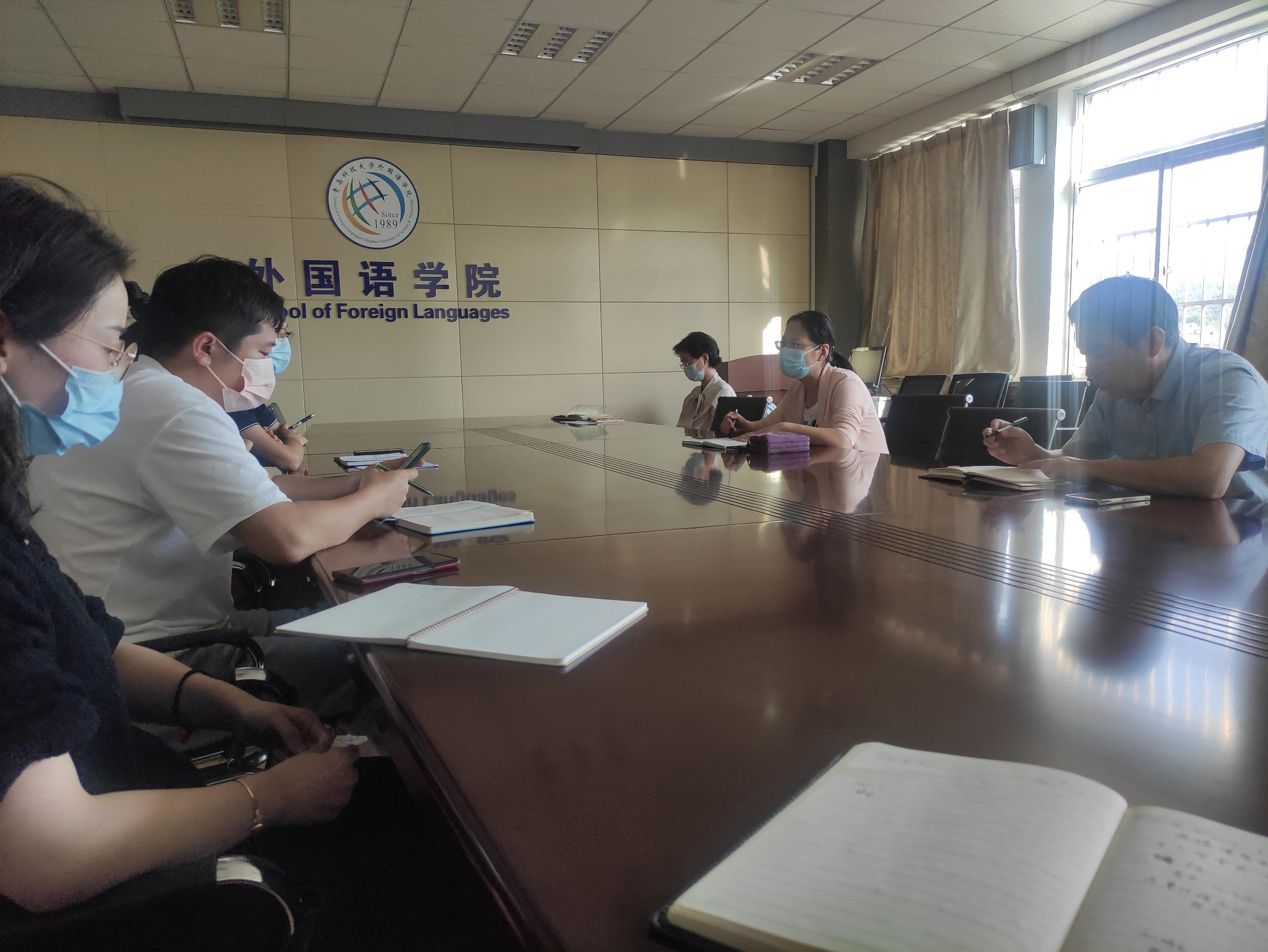 于517会议室召开疫情防控专题会议。参加此次会议的有学院党委书记曲斌艳、院长尹洪山、分管副书记王晓娜、院办主任张亚妮以及全体专职辅导员。