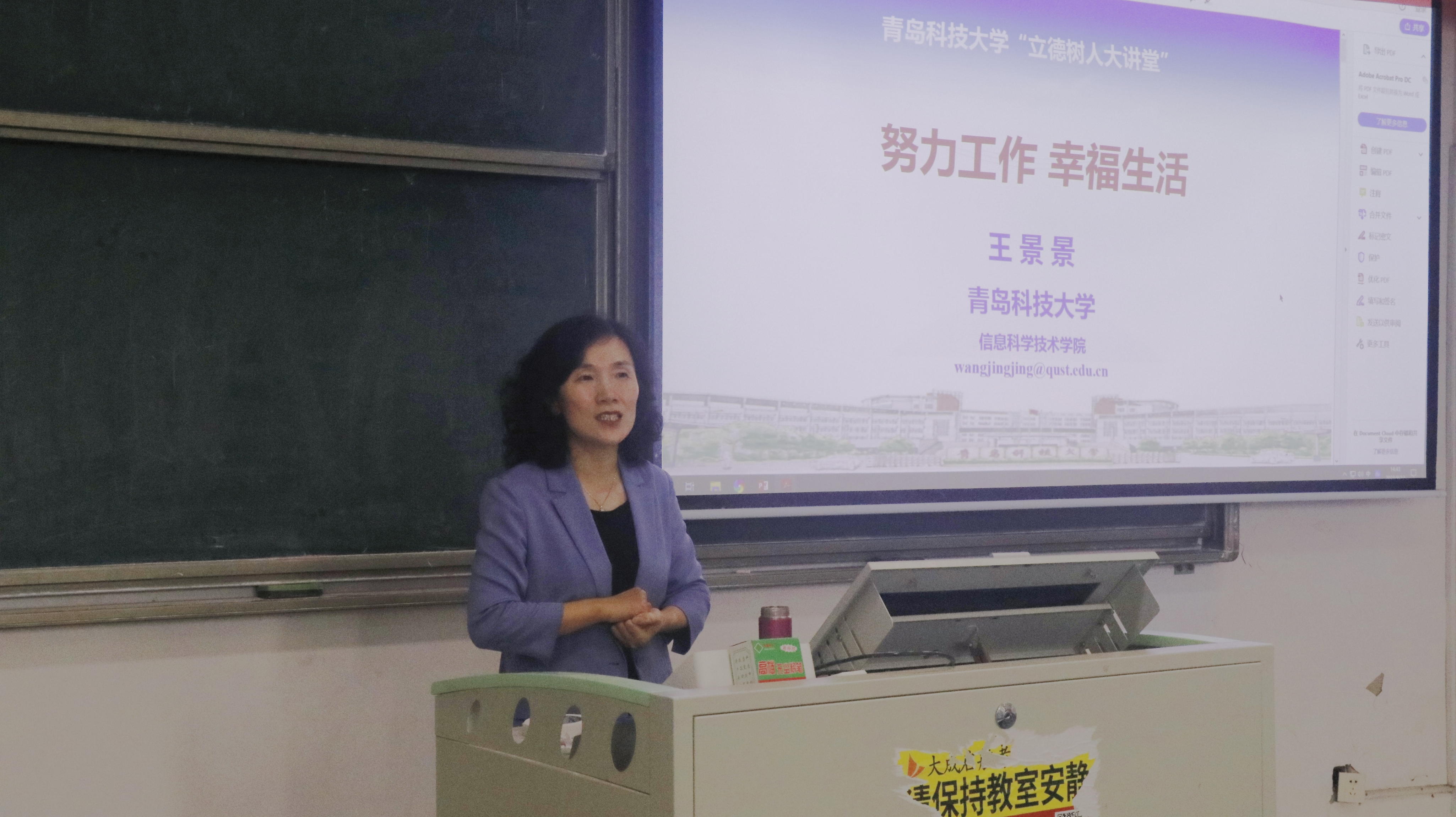 二级教授、博导王景景为学院全体教师开展了题为《努力工作幸福生活》的师德师风宣讲。