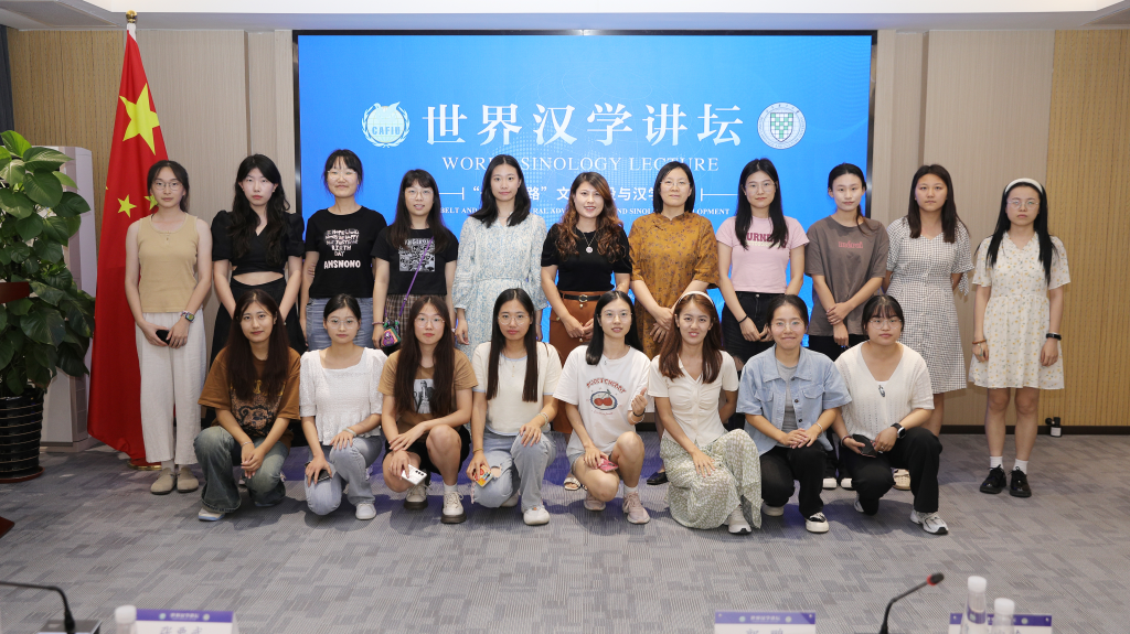 的20多位研究生、本科生进行现场交流互动,与会各方交换了各自见解,增进了彼此之间的友谊。学院研究生张文文说,通过参加此次论坛,自己对于“一带一路”文化交流也有了更加清晰的了解。学生代表们都表达了致力于促进人类文明进步、推动构建人类命运共同体的真诚愿望,希望为汉学研究贡献更多青春力量。
