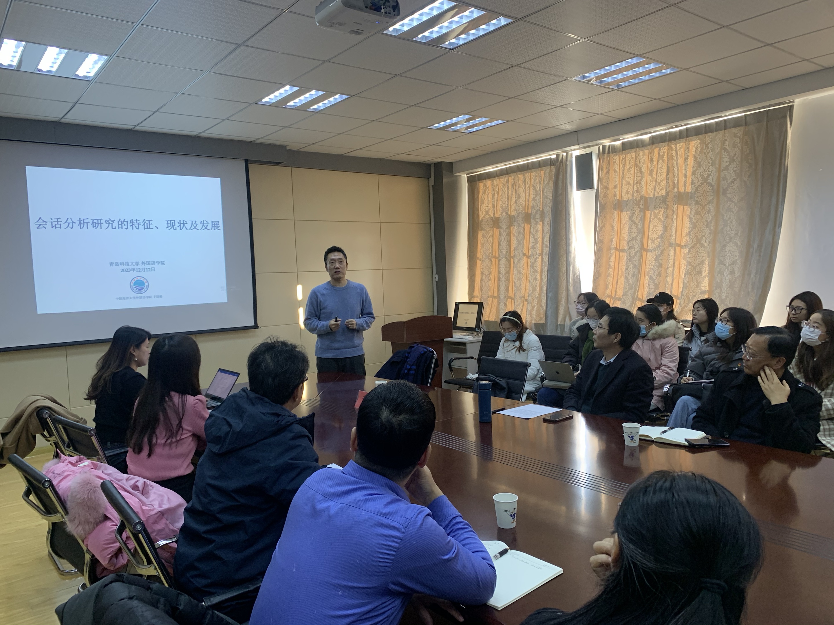 院长于国栋教授应学院邀请,在外语楼517会议室做了题为《会话分析研究的特征、现状与发展》的学术讲座。讲座由院长尹洪山主持,学院部分骨干教师和研究生聆听了讲座。