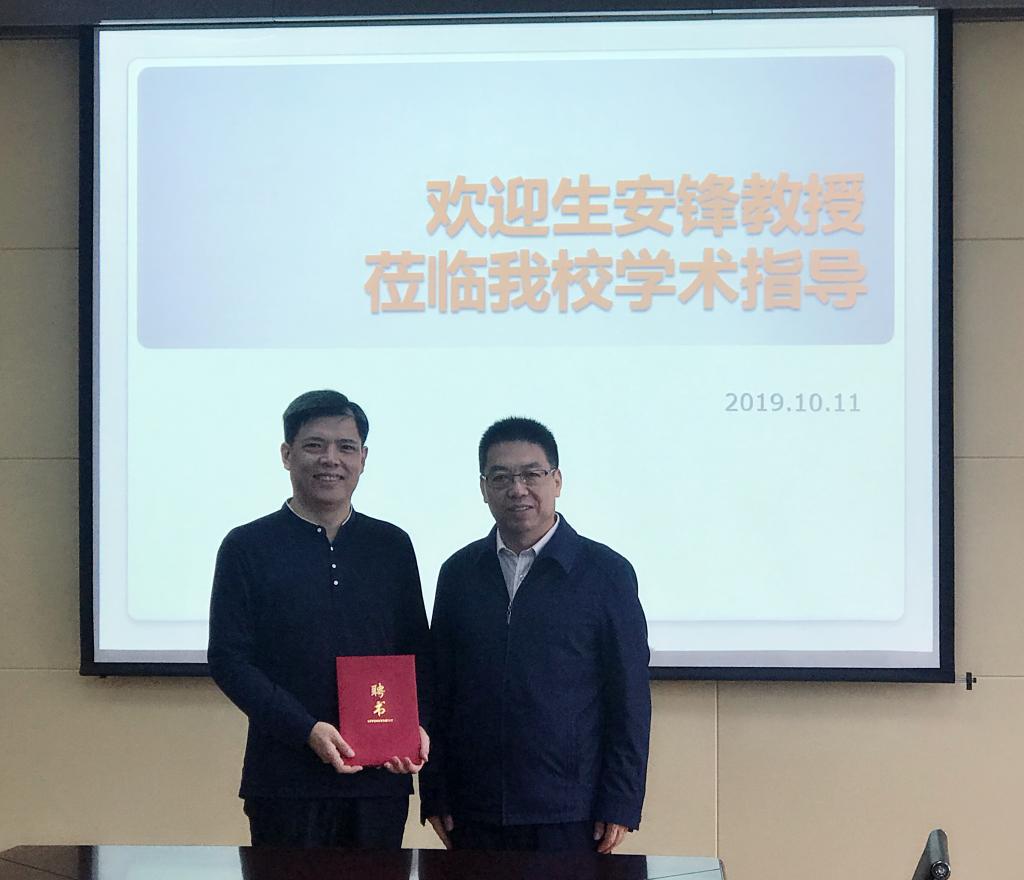 客座教授表示热烈祝贺。他指出,此次聘任工作加强了学院的人才队伍建设,对于进一步推动学院的科研水平和学科建设具有重要的推动作用。生安锋教授在受聘仪式上发言表示,今后作为科大外语学院的一员,将协助学院进行学科发展规划,定期为学院师生开展学术讲座,加强学院的对外学术交流。