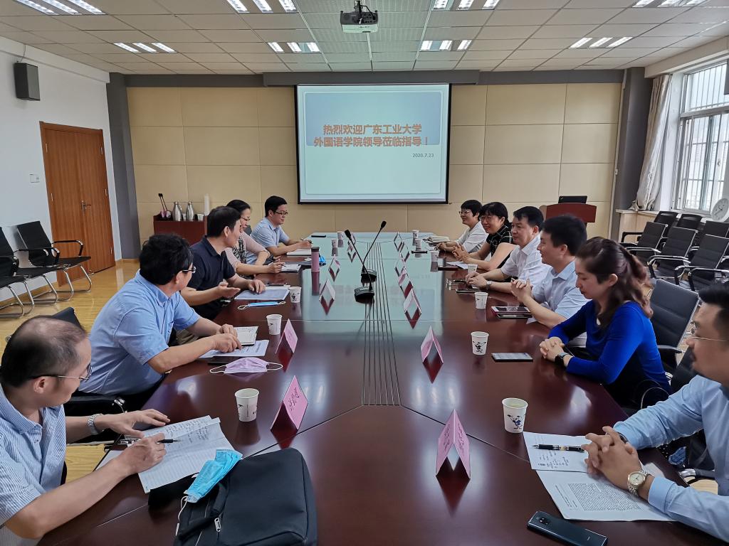 领导一行的来访表示热烈欢迎,简要介绍了学院的基本情况。学院党委书记曲斌艳就理工科院校外语学院如何定位,党建如何与业务工作有机融合等问题与对方交换了意见。副院长吕耀中从学院学科建设、小语种师资力量、办学规模、项目申报等方面做了介绍。院长助理刘靖介绍了我校大学英语教学改革情况,双方就理工科院校大学英语的定位与发展进行了交流。