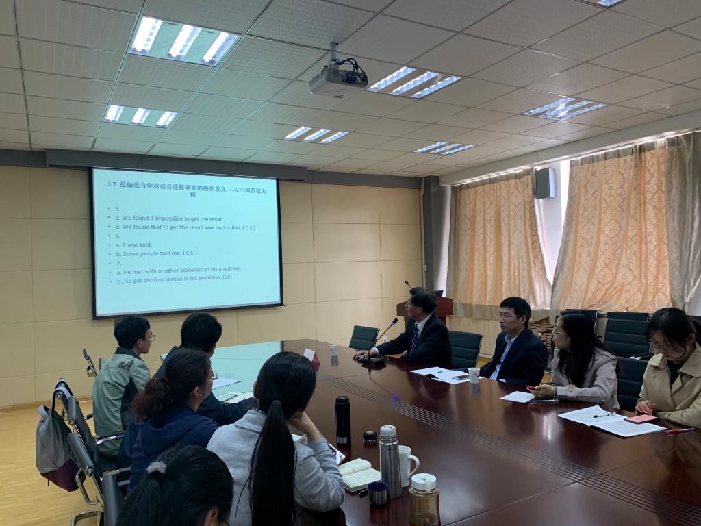 邀请在外语楼517室作了题为《语言迁移新视角》的报告。报告会由尹洪山院长主持,副院长吕耀中、院长助理刘靖及部分教师和研究生参加了报告会。