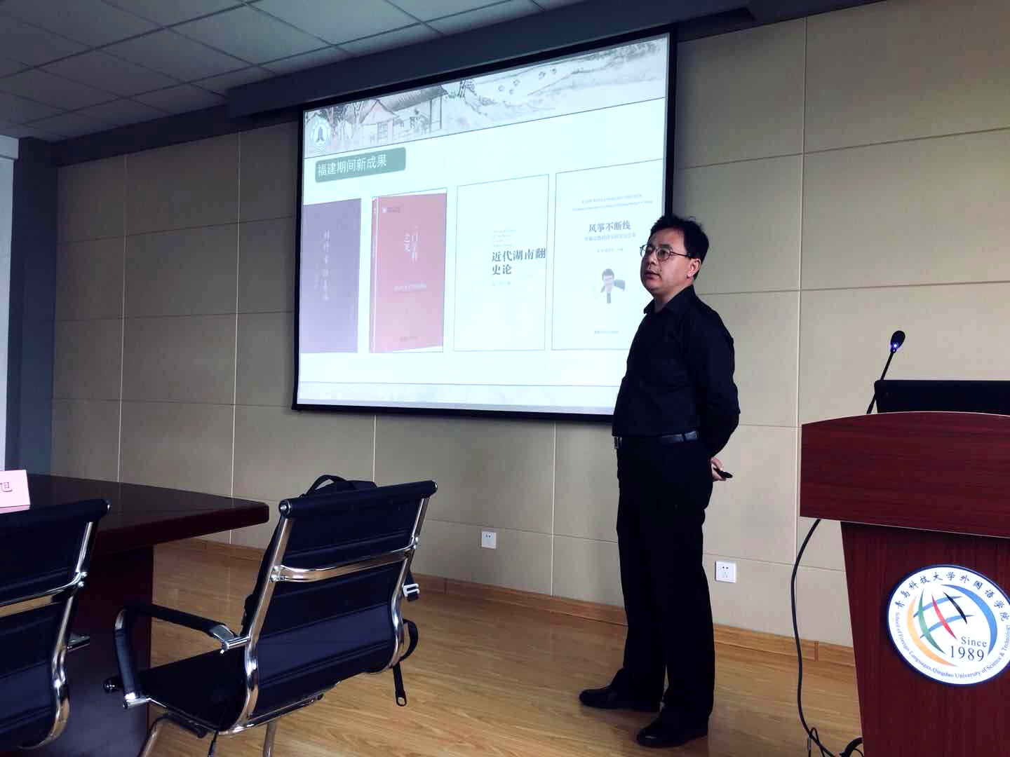 师生进行了题为《知识考古与现代翻译史研究》的学术报告。报告会由吕耀中副院长主持,院长尹洪山、各语系教师以及翻译硕士研究生参加了此次报告会。