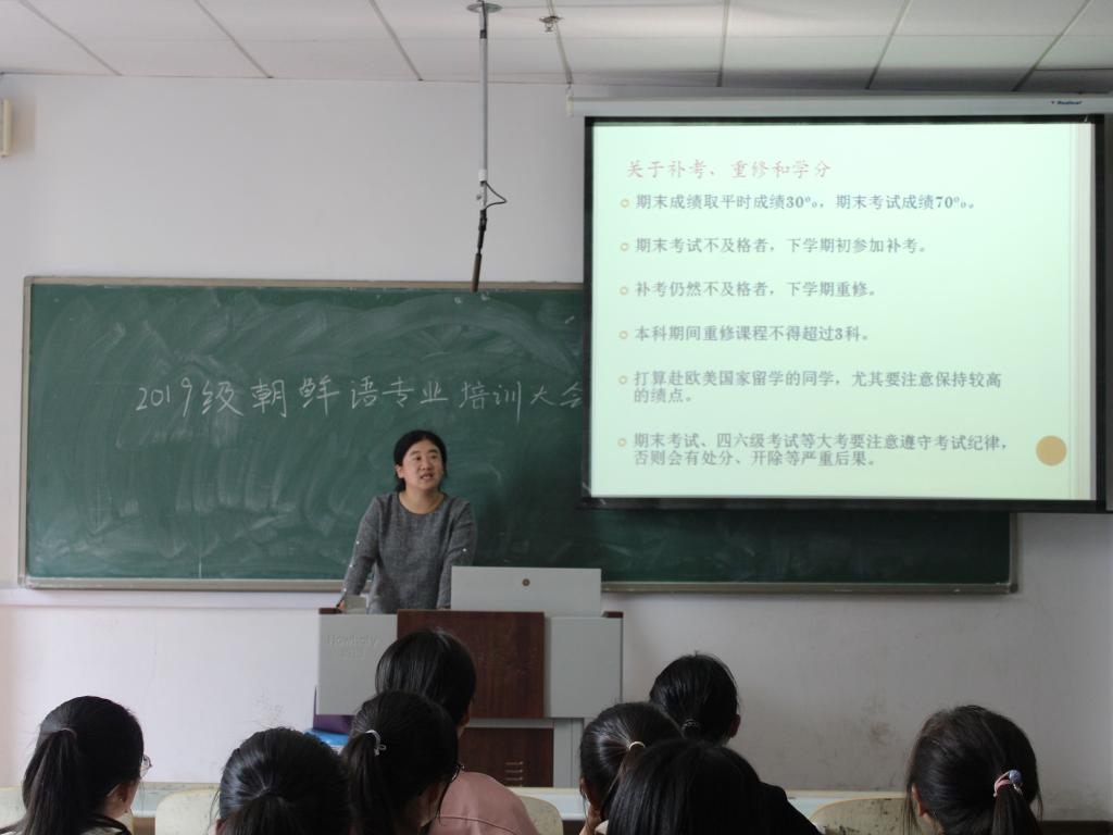 在课程设置上分基础阶段和专业阶段,基本目的是让学生通过四年的专业学习掌握听说读写译的专业技能,并掌握一定的外国文化、文学及语言学专业知识,为将来的工作及继续深造做准备。最后介绍了学校为学生专业学习配备的专业教室、语音室、图书馆硬件设施及大致的功能划分、使用方法等。