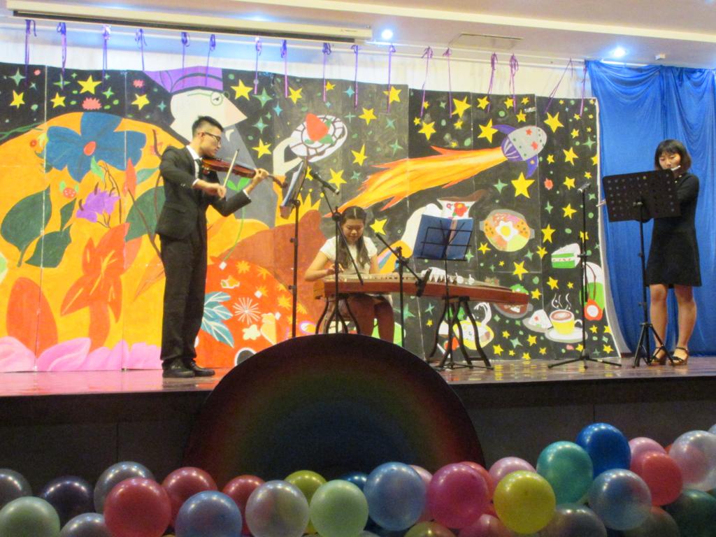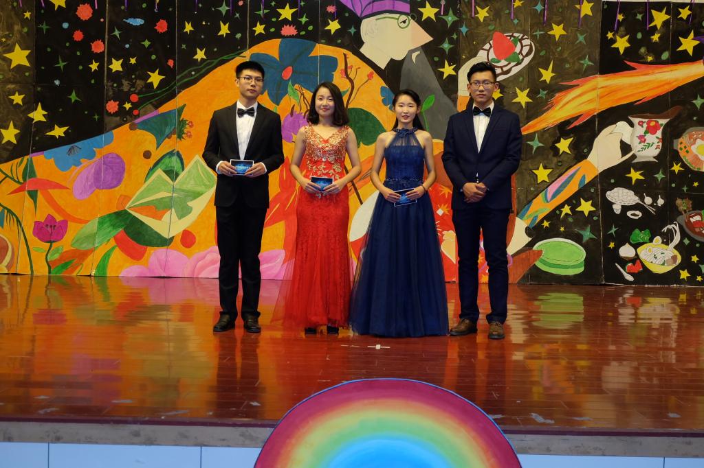 特别值得一提的是来自学院外文广播电台的同学们表演的《VOC歌舞》,这些发音标准的外语播音员用青春活力的舞蹈给大家带来了不一样的体验;由17级新生带来的《杯子舞》形式新颖独特,这群天真烂漫、活泼机灵的新鲜血液吸引了在场所有的观众;英语系彭举云老师倾情献唱《The First Noel》,同学们的热情也是空前高涨;柔美悲伤的《大鱼》,凄美的《梁祝》,异域风情的朝鲜民族舞《华韵》,用别具一格的形式将这一民族瑰宝完美地呈现于舞台,表达了当代大学生们对美好生活的追求和向往。最后由分团委老师和学生会部长们带来的舞蹈,将晚会推向了高潮。此次迎新晚会在同学们的精心筹备下,精彩纷呈,掌声与欢呼声不时雷动全场。演出在合唱《歌唱祖国》中落下帷幕。