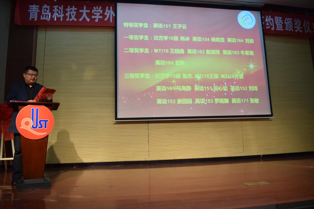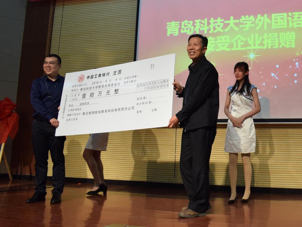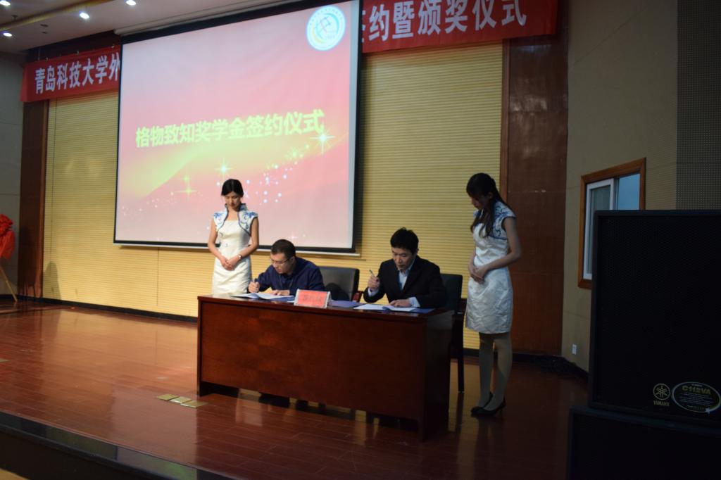 “格物致知奖学金”签约暨颁奖仪式在第一报告厅举行。青岛格物致知教育科技有限责任公司总经理徐新友、教研总监马晓燕以及总经理助理郭晓冬,校教育发展基金会秘书长、校友工作办公室主任聂广明,耽美小说
