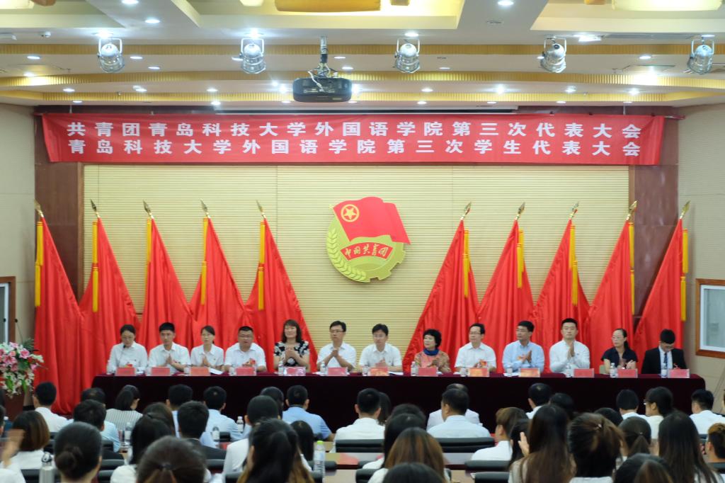 党总支副书记兼副院长宋飞致开幕词。他指出,第二次团代会和第二次学代会召开以来,学院各团支部和广大团员青年在学院党总支的直接领导下,精准站位,服务大局,搭桥梁、聚人心、讲奉献、创品牌,在“心系青年、组织青年、引导青年、服务青年”等方面发挥了重要作用。宋飞强调,青春承载梦想,实干创造未来,让我们高举习近平新时代中国特色社会主义思想伟大旗帜,在党的十九大精神和学校第十次党代会精神的指引下,以这次团代会的召开为新的起点,团结和带领全院广大团员青年,发扬科大精神,践行橡胶品格,贯彻五有理念,以青春为笔书写无愧于时代的绝代芳华,以奋斗为符描绘无愧于历史的锦绣篇章,在实现中华民族伟大复兴中国梦的征程中锻造自我、放飞自我、成就自我。各兄弟学院分团委、后勤分团委、高密校区团委来电、来函祝贺大会胜利召开。艺术学院分团委书记赵含代表兄弟学院共青团向大会致贺辞。