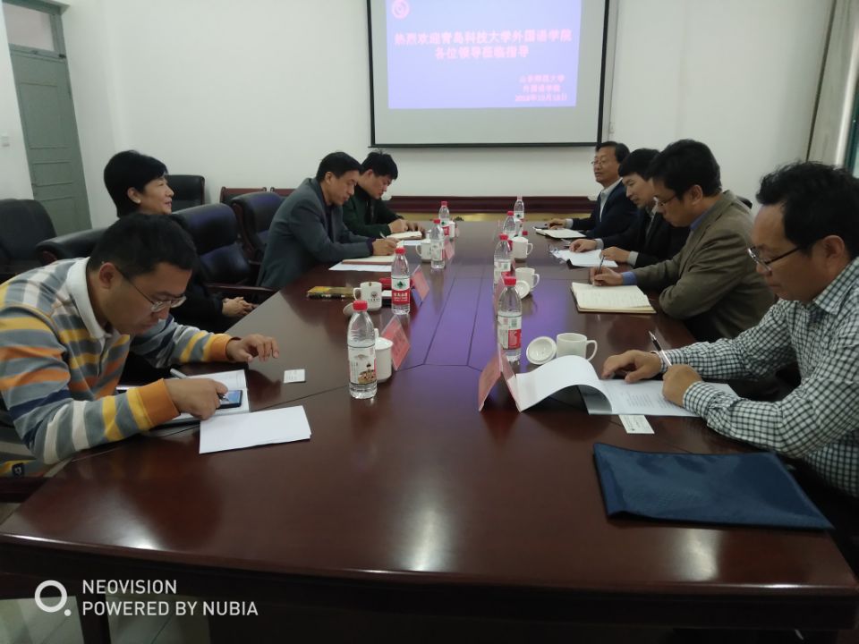 相关负责人进行了座谈交流。座谈会上,大家相互介绍了学院的基本情况,就党建促进发展、学科建设、学生管理、本科教学质量建设、硕士点合格评估、科研水平提升、创新创业教育、大学英语课程改革与信息化建设等方面进行了深入研讨,并就下一步加强学校间合作与交流,实现共赢达成了初步意向。