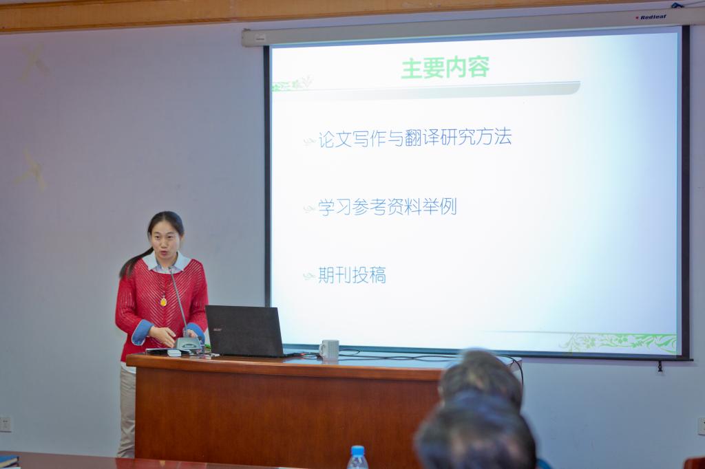 郑晔博士首先指出目前大部分MTI学生在做翻译研究时所遇到的问题——实践有余而理论不足,由此引出了“如何做研究”这一问题,并针对这一问题展开了深入的讨论并佐以大量例证,并就MTI与研究型硕士论文的写作结构进行了阐述。她指出,研究生要大量阅读文献与期刊并养成记录的好习惯。接着,郑晔讲述了论文写作的准备工作。她从搜集文献资料的不同渠道谈起,介绍了准备工作的原则、研究问题的标准和具体的研究方法。她还向广大的MTI学生推荐了阅读书目和相应的教材。最后,郑晔博士向大家介绍了一些国际学术期刊及其投稿渠道,并简述了一些审稿标准。