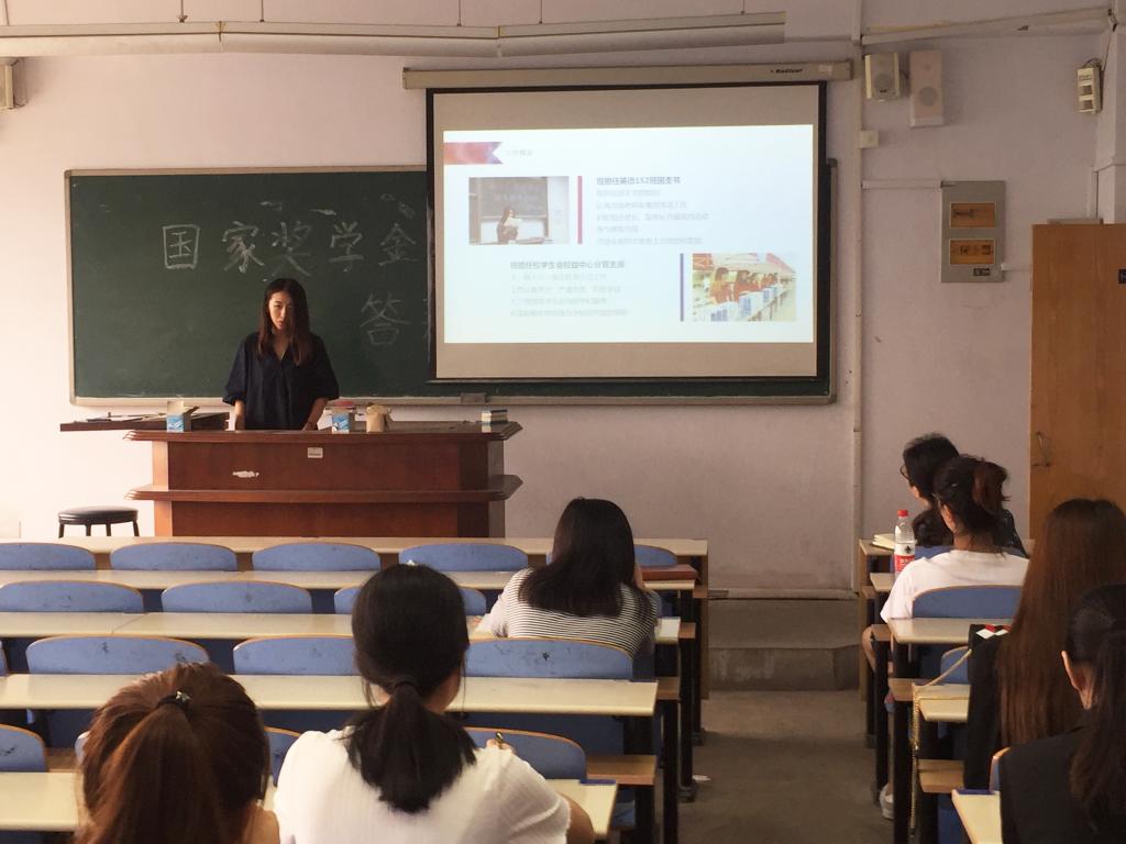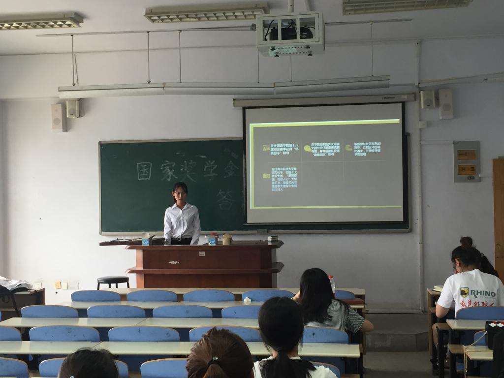 在弘毅楼D307召开国家、省政府奖学金答辩暨学风建设成果汇报会。学院全体辅导员、学生代表50人参加了本次会议。会议由分团委副书记辛婷婷主持。