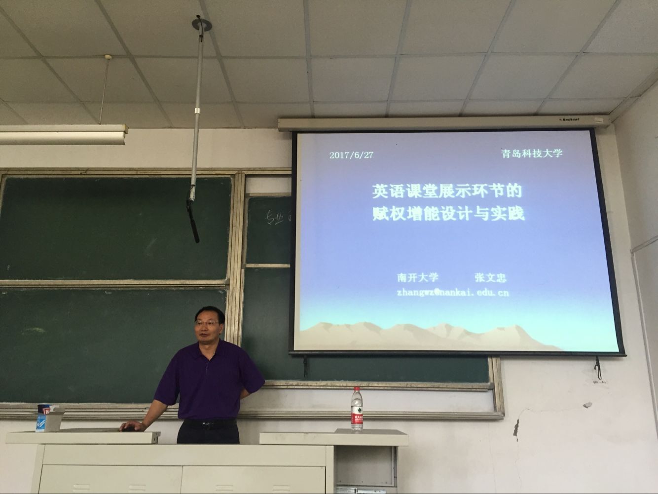 全体教师作了题为《英语课堂展示环节的赋权增能设计》的学术报告。
