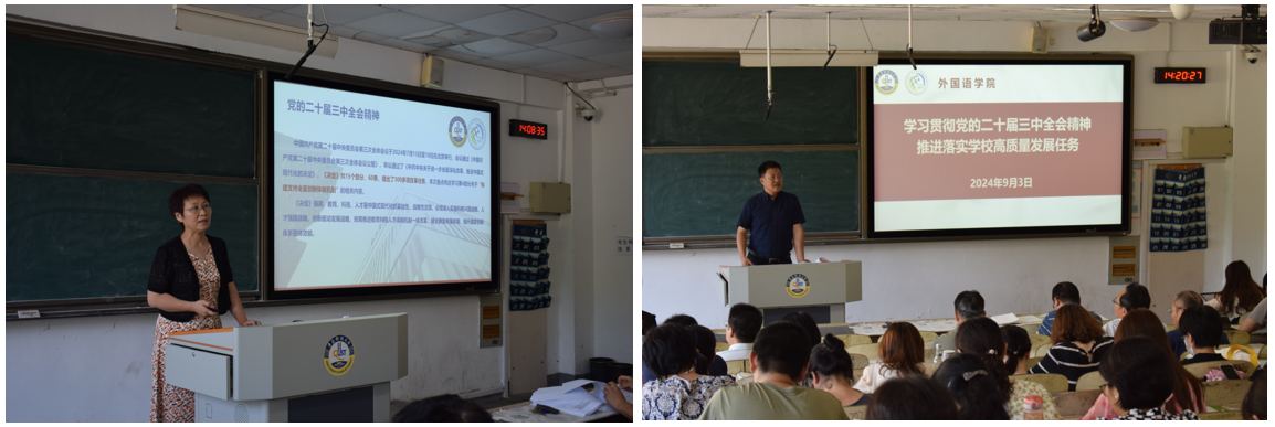 召开全体教职工大会,学习贯彻党的二十届三中全会精神,安排部署新学习重点工作。学院党委书记曲斌艳主持,全体教职工参加。