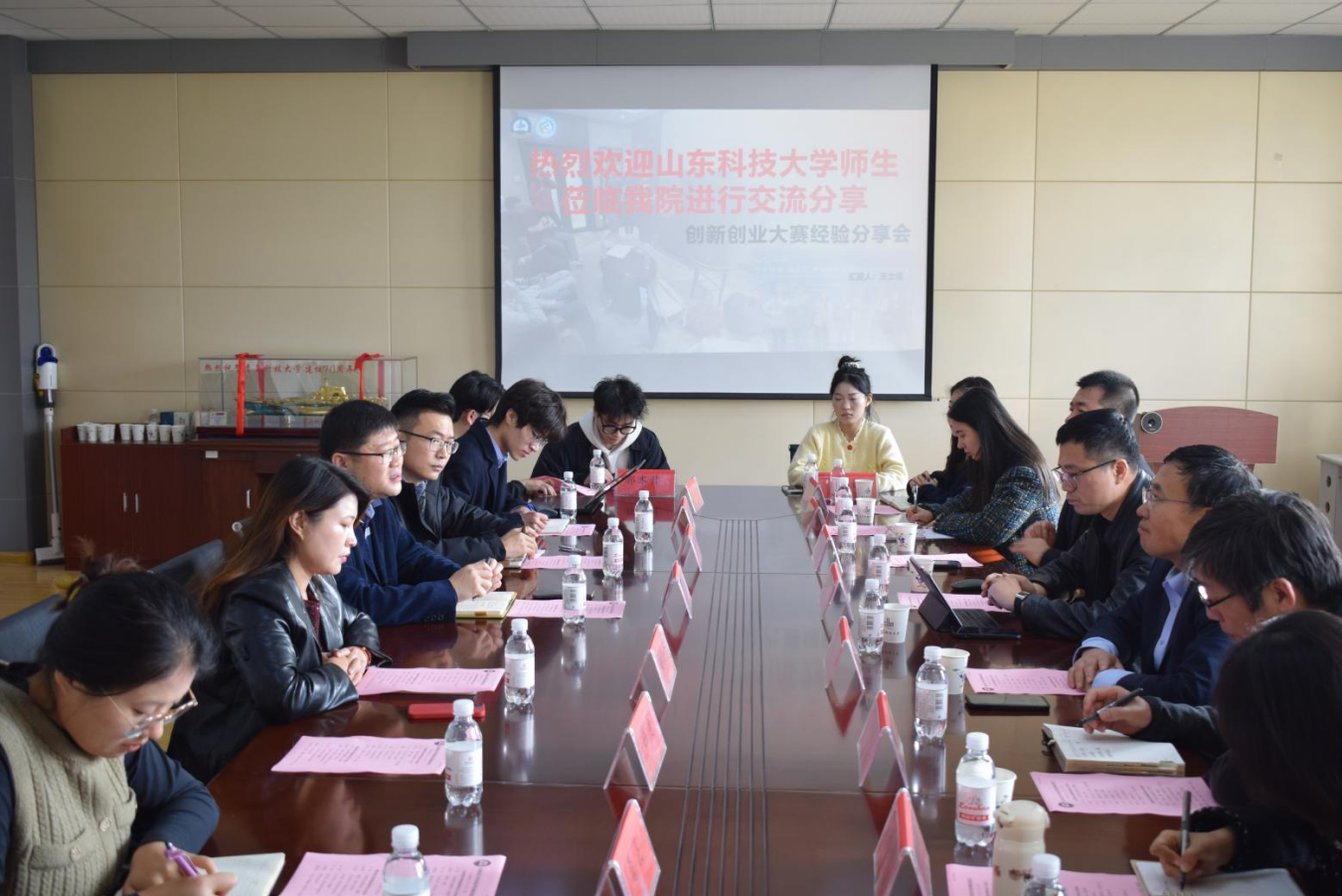 同为驻青高校,两个学院可以在人才培养、教学研究等方面实现资源共享与互利共建。刘强还就辅导员工作室、学生教育管理等方面分享了经验做法。双方就学生工作、教学工作和专业建设等方面进行了交流。
