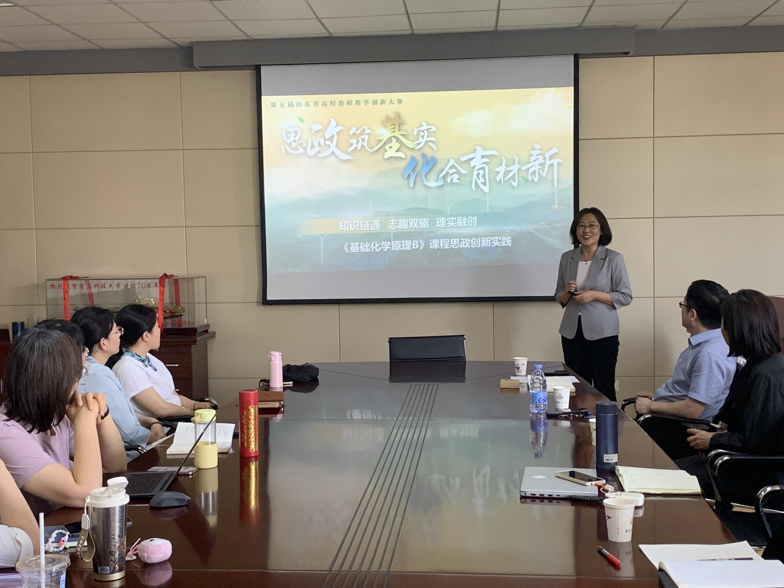 副院长刘靖主持,化学与分子工程学院老师林洁华和艺术学院老师夏琳分别作了丰富的教学比赛经验分享。