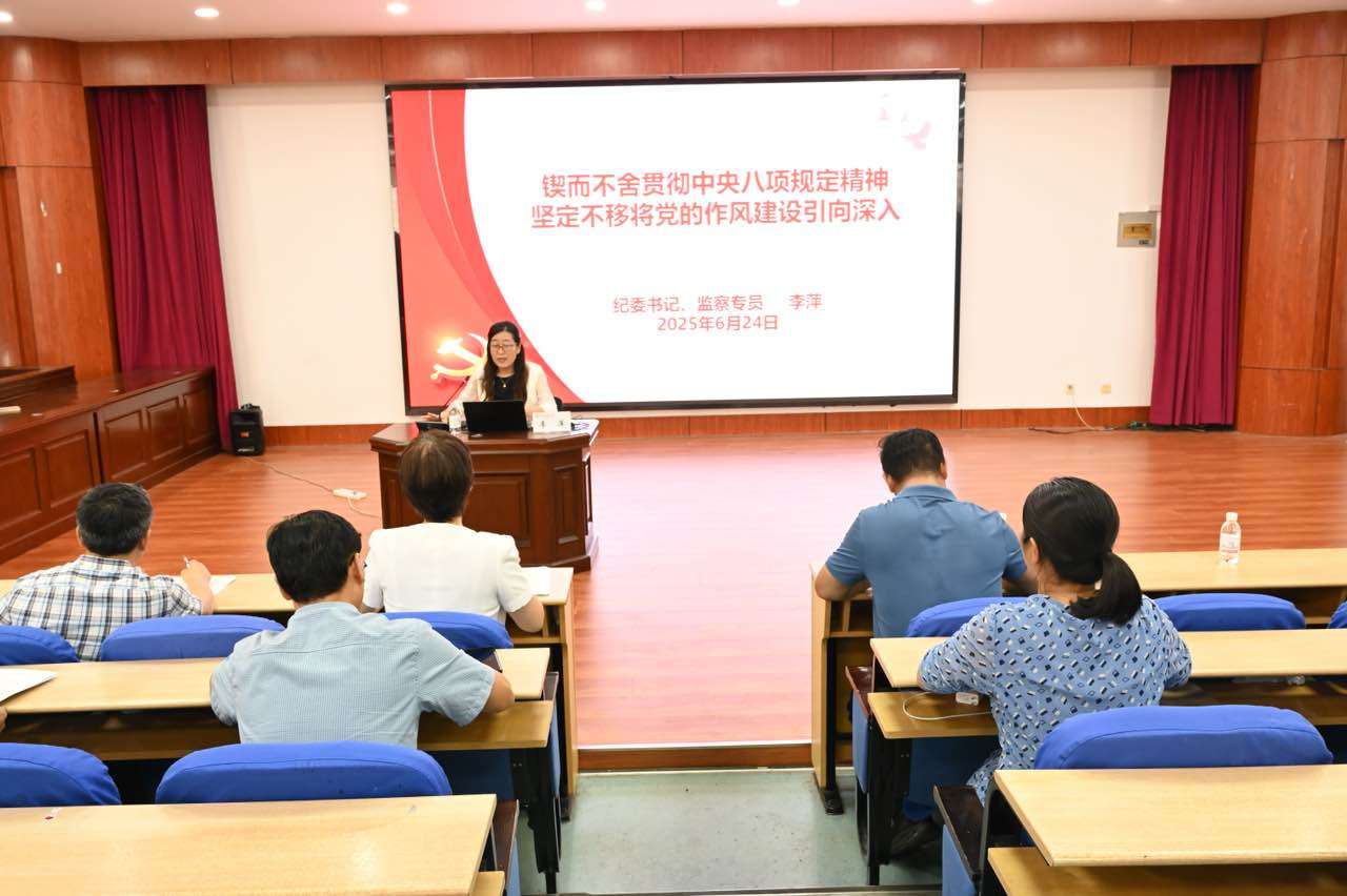 李萍以《锲而不舍贯彻中央八项规定精神坚定不移将党的作风建设引向深入》为题,围绕深刻认识开展学习教育的重大意义、准确领会中央八项规定及其实施细则精神的核心要义和实践要求、当前违反中央八项规定精神的突出问题和表现、锲而不舍抓好中央八项规定精神贯彻落实四个方面展开讲解。李萍指出,作风建设永远在路上,深入贯彻中央八项规定精神是一项长期政治任务,要锲而不舍抓好中央八项规定精神贯彻落实,要认真贯彻、严格执行中央八项规定精神。