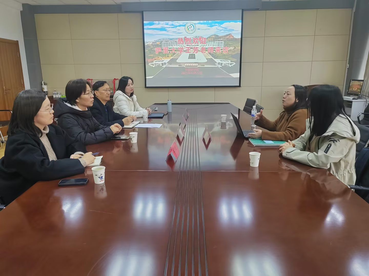 2025年12月22日下午,英国萨里大学王芳博士应邀来访,和学院领导进行了座谈交流并给学生开展了学术讲座。