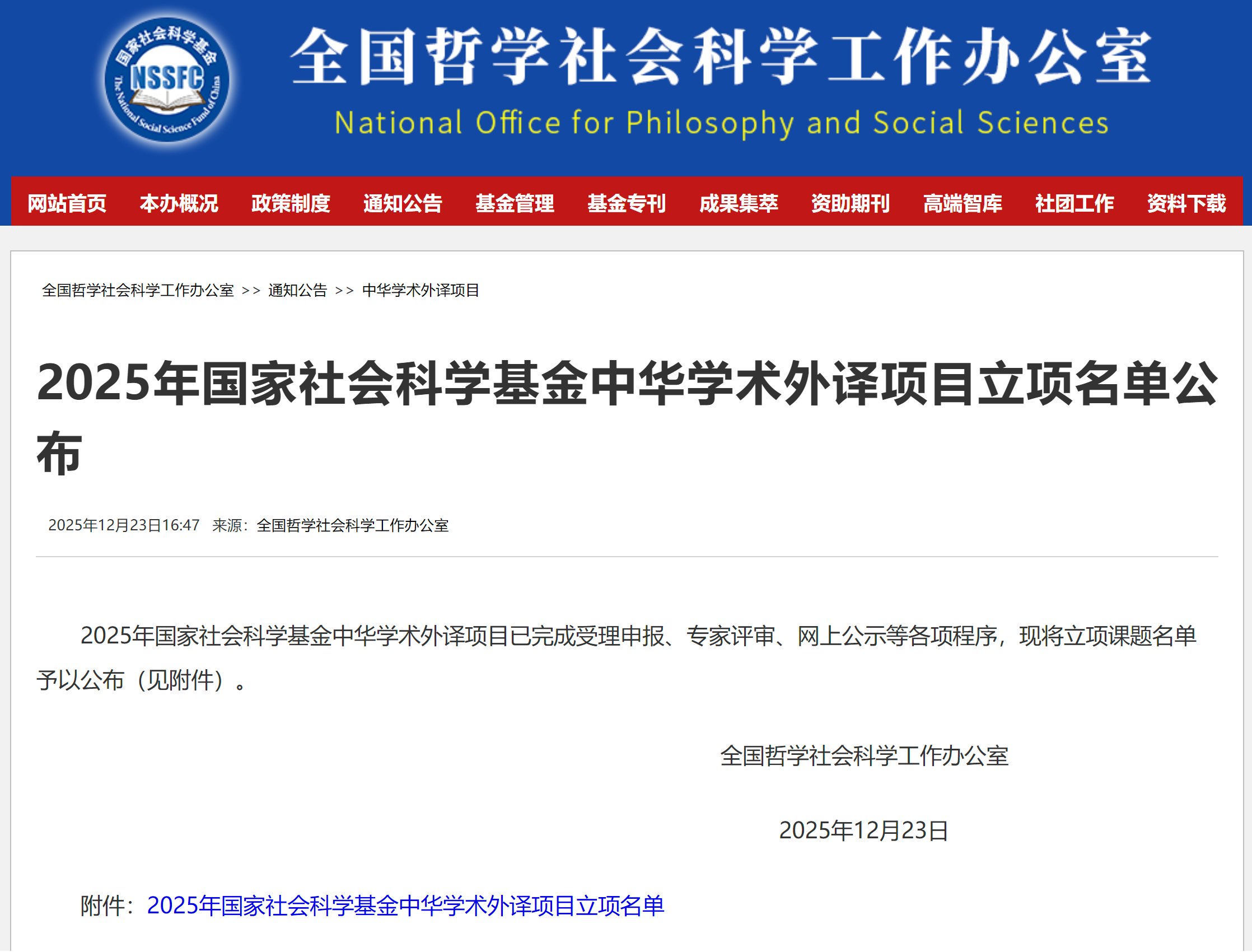 近日,国家社科基金中华学术外译项目立项名单正式公布。我校耽美小说