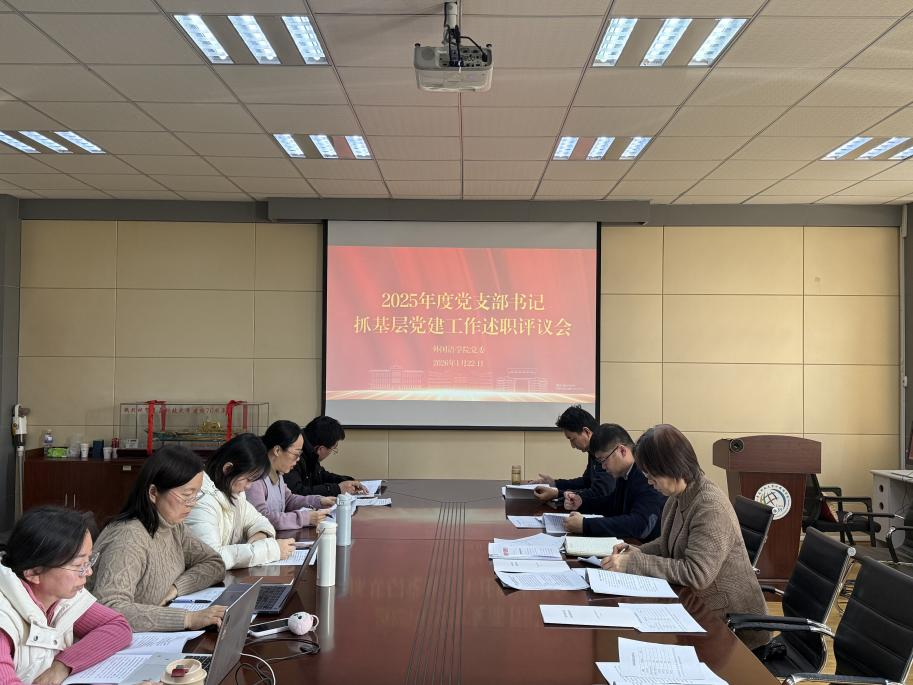 在517会议室召开2025年度党支部书记抓基层党建述职评议会。学院党委委员、学院班子成员、全体党支部书记、部分教师代表出席会议,会议由学院党委副书记兼副院长马寒主持。