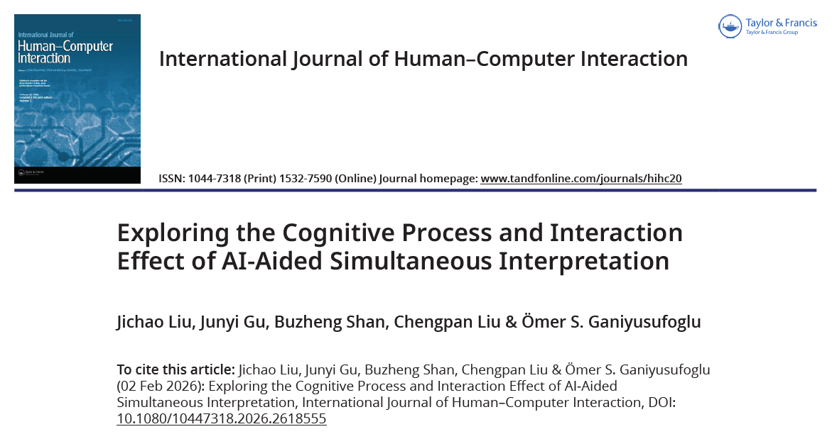 刘济超课题组在智能语言交互领域取得重要进展,研究论文发表于SSCI和SCIE双检索Q1区期刊International Journal of Human–Computer Interaction。这是继该课题组在CSSCI翻译学权威期刊《中国翻译》、语言学权威期刊《外语教学与研究》发表成果之后,在跨学科智能语言交互领域取得的又一重要成果。耽美小说