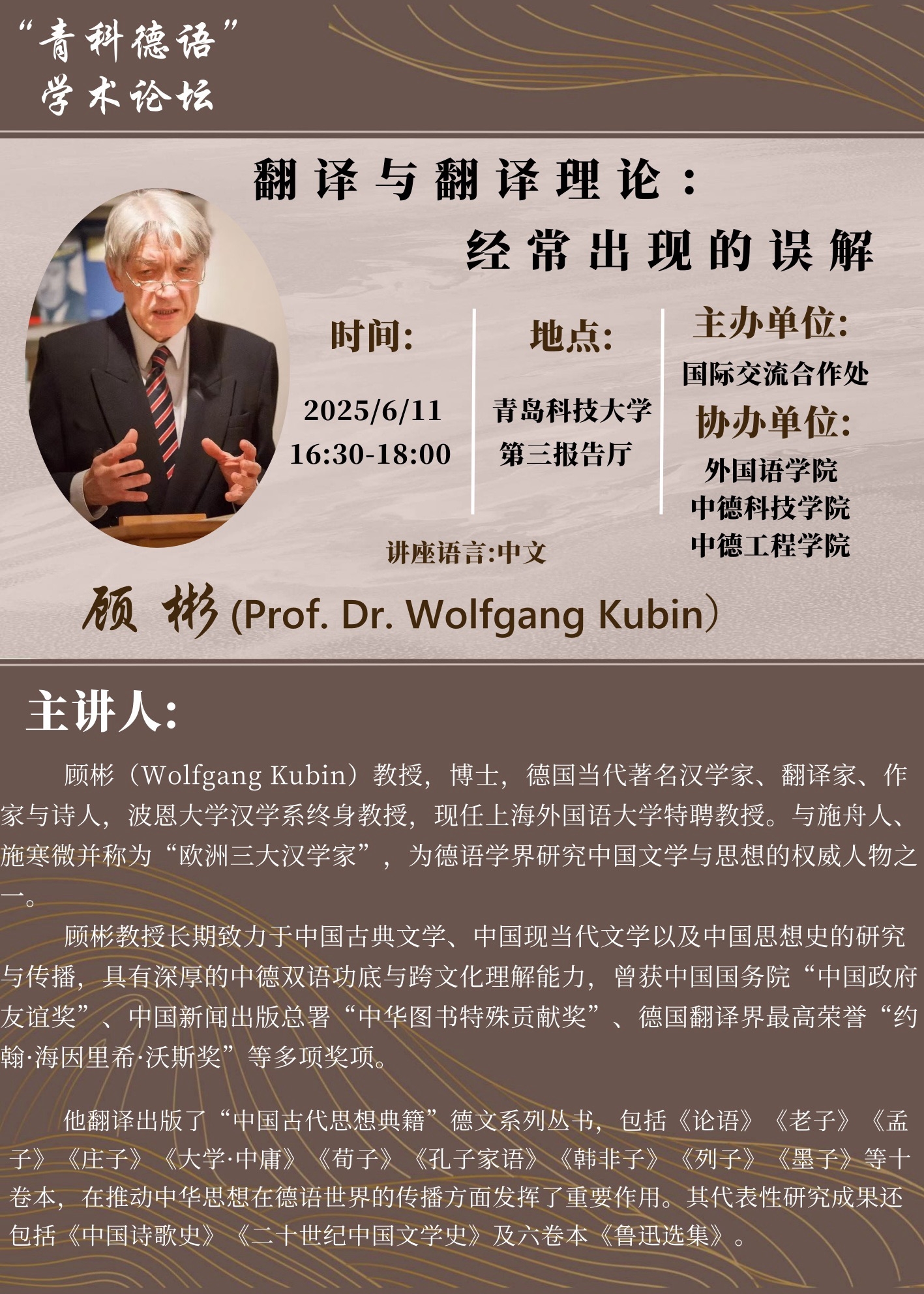 主讲人:顾彬(Prof. Dr. Wolfgang Kubin)