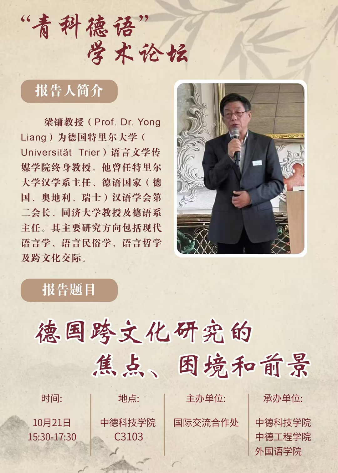 讲座题目:德国跨文化研究的焦点、困境和前景