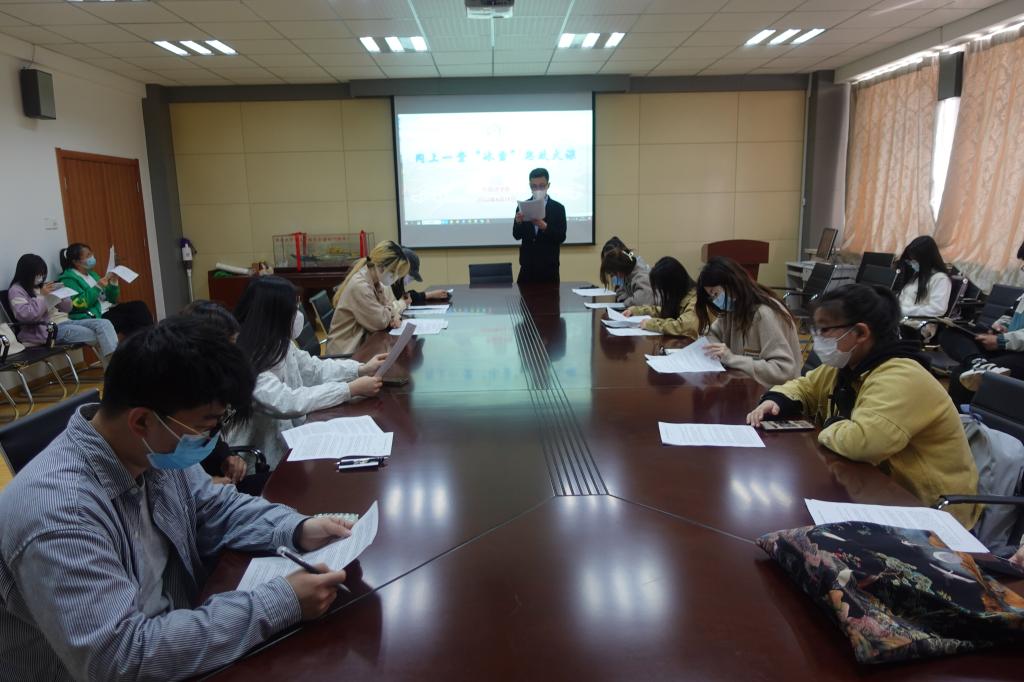 直播课程结束后,张湘钧老师为线下集中学习的同学们发放了习近平总书记在北京冬奥会、冬残奥会总结表彰大会上的讲话稿,并组织在场学生集体学习。