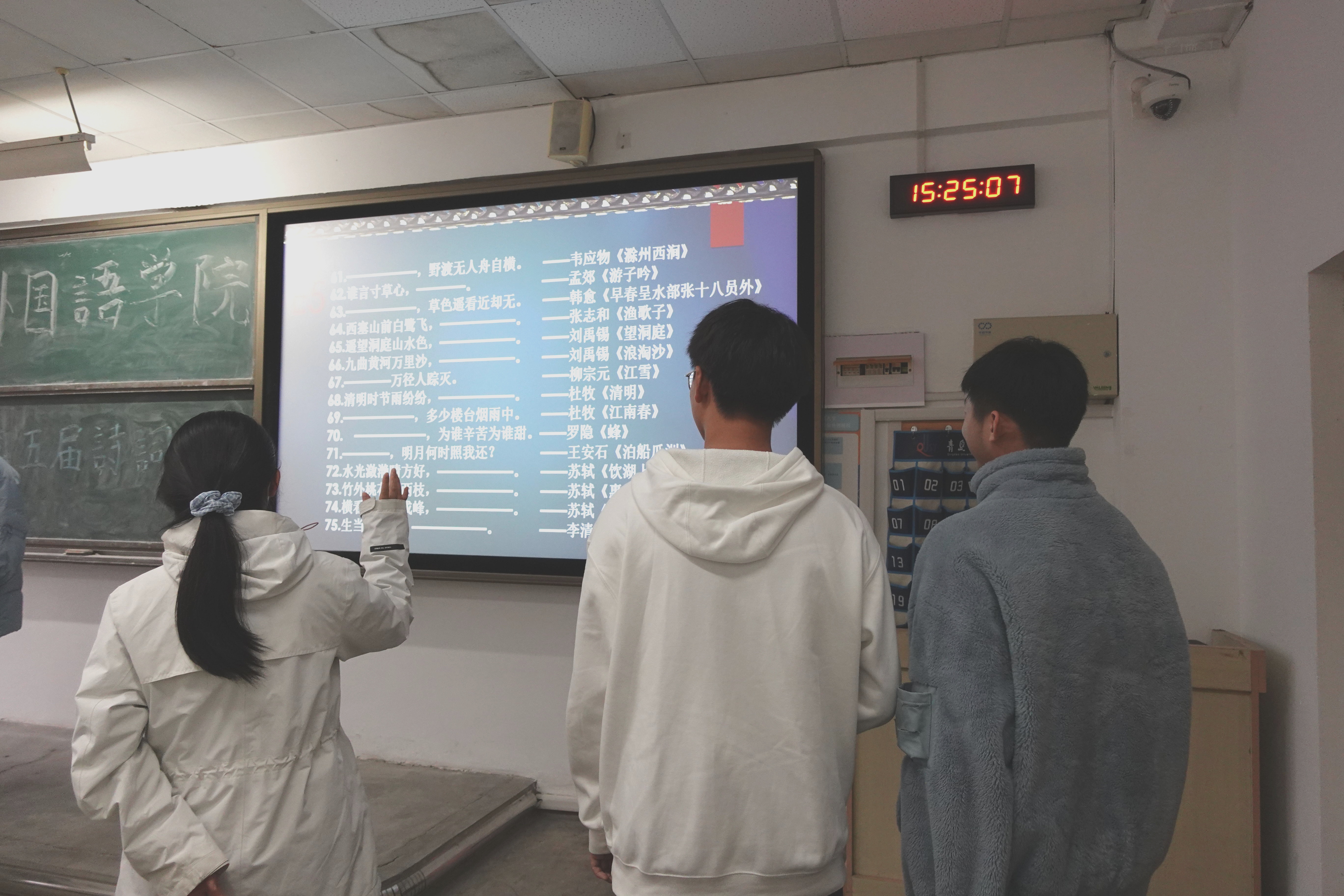 本次活动过程中,各班同学踊跃报名,每班均派了出三位同学参加诗词比赛,角逐冠军。比赛过程中各位选手引经据典,共同为大家展现了诗词的魅力。最终,获奖名单如下: