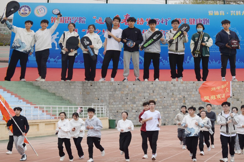 于4月11日在崂山校区体育场举办了“运动青春·语梦偕行”师生健康跑暨“春之华”科技文化节启动仪式。教务处、党委学生工作部、校团委、国有资产与实验室管理处等部门负责人及学院师生代表参加了启动仪式。