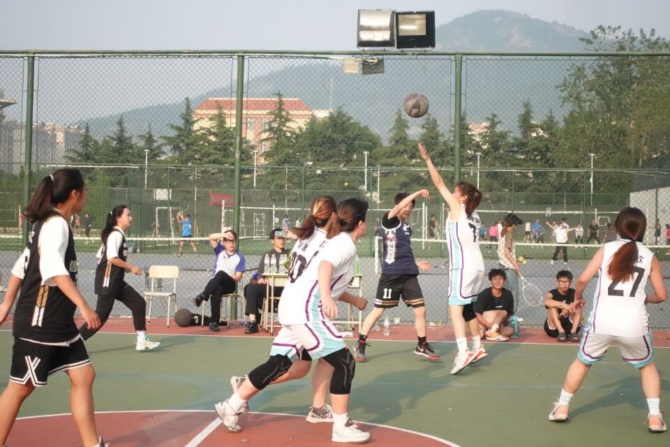 在南苑篮球场参加“青年杯”女篮友谊赛。