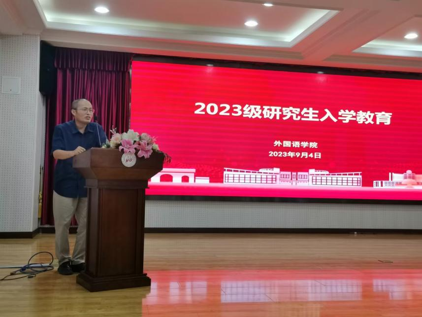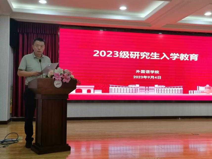 院长尹洪山致辞。尹院长向新入学的2023级研究生表示了热烈的欢迎。尹院长介绍了耽美小说