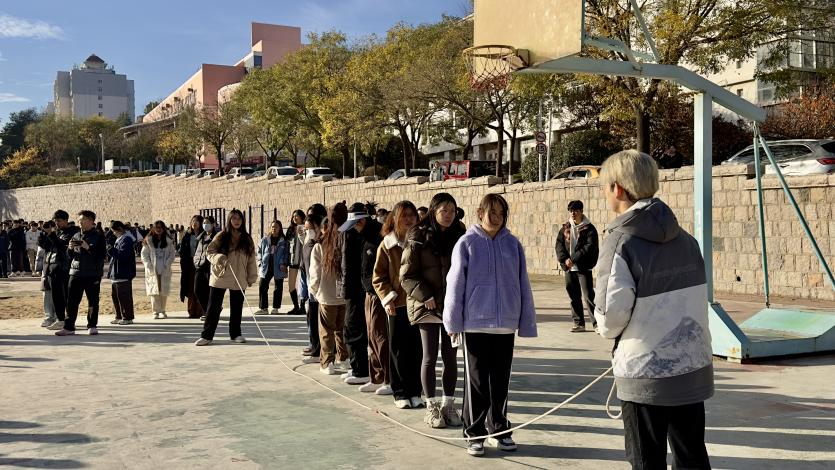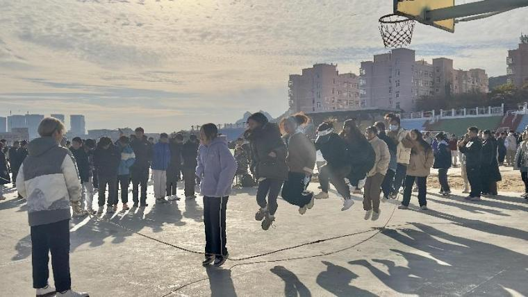 参加跳绳比赛的同学们高高跃起,摇绳的同学们咬牙坚持,共同完成了本次跳绳比赛,默契的配合将本次比赛气氛推上了巅峰。