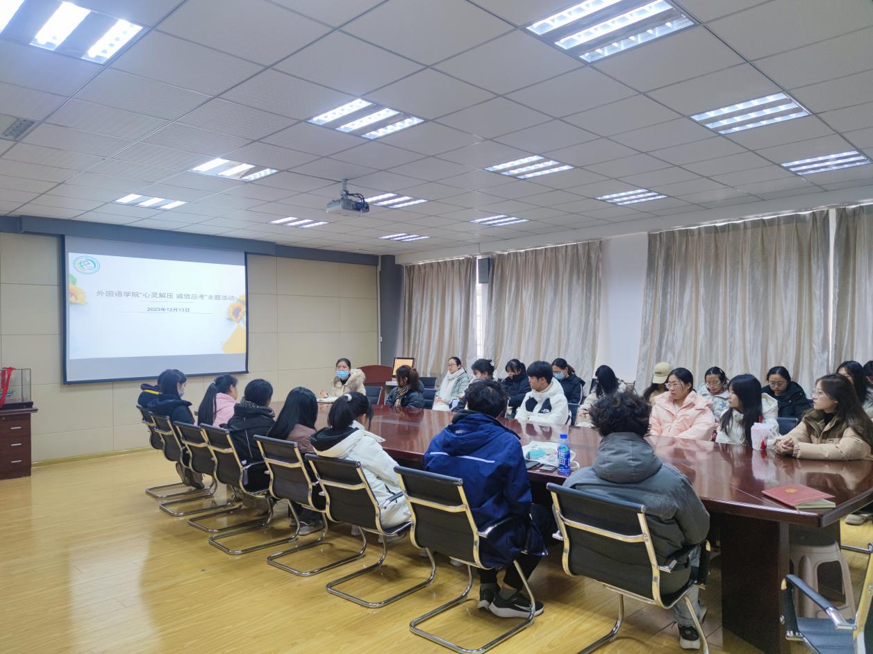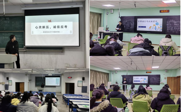 自12月11日起开展了“心灵解压,诚信应考”主题活动,学院全年级各班级进行了主题班会,学院于12月13日在外院517会议室召开“心灵解压,诚信应考”主题会议,辅导员马耀青老师以及各班班委参加了会议。