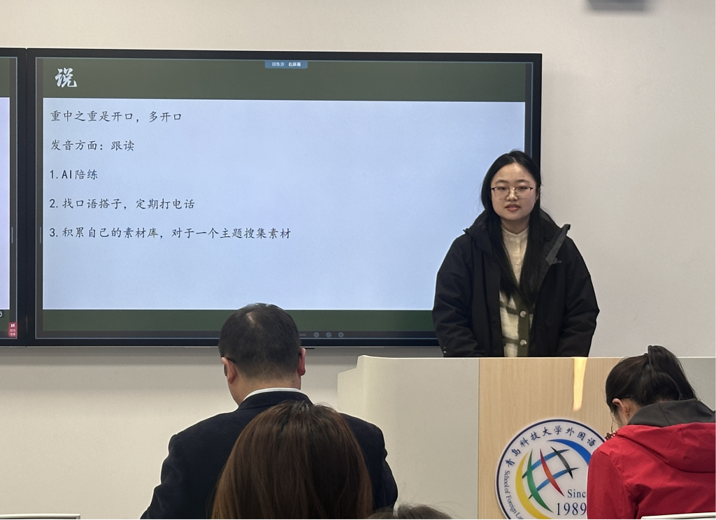 学科竞赛代表英语234班武采辰,在2025年“外研社·国才杯”“理解当代中国”全国大学生外语能力大赛及全国商务英语竞赛中荣获国家级奖项,她结合自身备赛、参赛经历,介绍了参加学科竞赛的竞赛备赛流程、团队协作技巧、资源整合方法等核心要点,鼓励同学们主动牵头组队,以赛促学、以赛促练,提升自身及身边同学的专业实践能力。