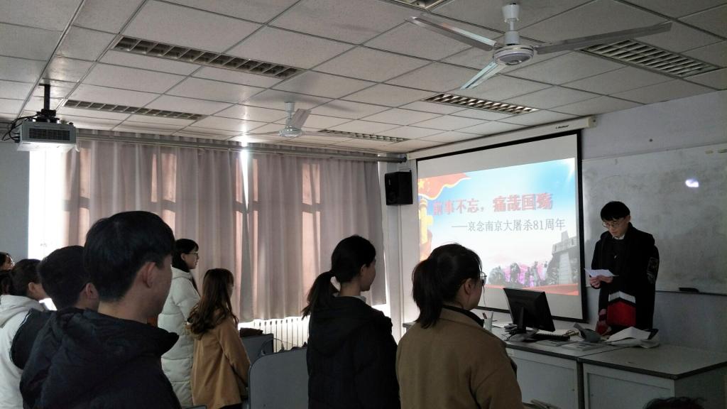 部分团支部利用课间时间开展了“铭记历史,圆梦中华”主题团日活动。英语182班团支书王佳琪利用课间时间带领全班同学齐声诵读《和平宣言》,并在团支部内开展了《和平宣言》翻译的活动;俄语181班共同学习了《赵一曼致子书》,缅怀为中国人民抗日战争胜利献出生命的革命先烈和民族英雄;日语171班同学共同观看了南京大屠杀纪念短片,号召同学们不忘国耻、珍爱和平、不断凝聚正力量,再创新时代锦绣年华。