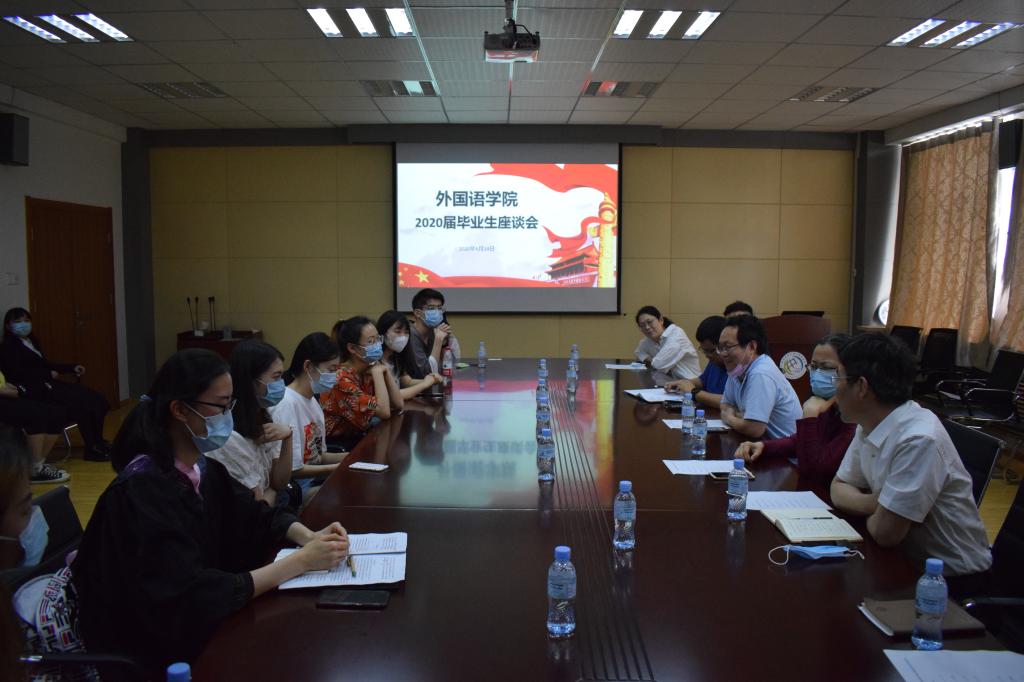 浓浓惜别意,依依不舍情。6月14日上午,耽美小说 于517会议室举行了2020届毕业生交流会。耽美小说 党委书记曲斌艳、副院长吕耀中、党总支副书记兼副院长宋飞、院长助理兼大学外语教学部主任刘靖、辅导员辛婷婷、王雨昕以及各专业优秀毕业生代表共同参加了本次座谈会。会议由耽美小说 院长尹洪山主持。
