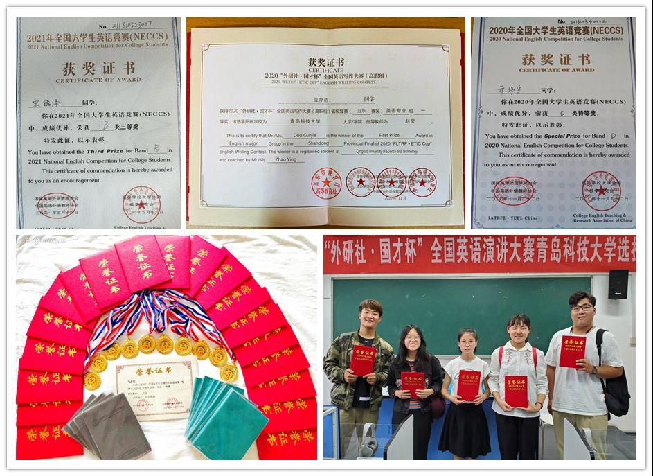 特色鲜明的专业设置形成了人次培养的独特优势,在历年的英语专业四、八级考试中,我们一直保持很高的通过率,高于全国同类院校平均通过率达30多个百分点。学生每年都有机会展现专业技能,不断提升自己的专业素养,可以参加全国大学生英语竞赛、全国大学生阅读写作大赛、大学生演讲比赛、大学生英语辩论赛、全国大学生口译大赛、驻青高校英语演讲比赛等各种赛事。英语专业教师会给参赛选手进行一对一的辅导和模拟训练,培养出一大批成绩显赫的参赛能手。