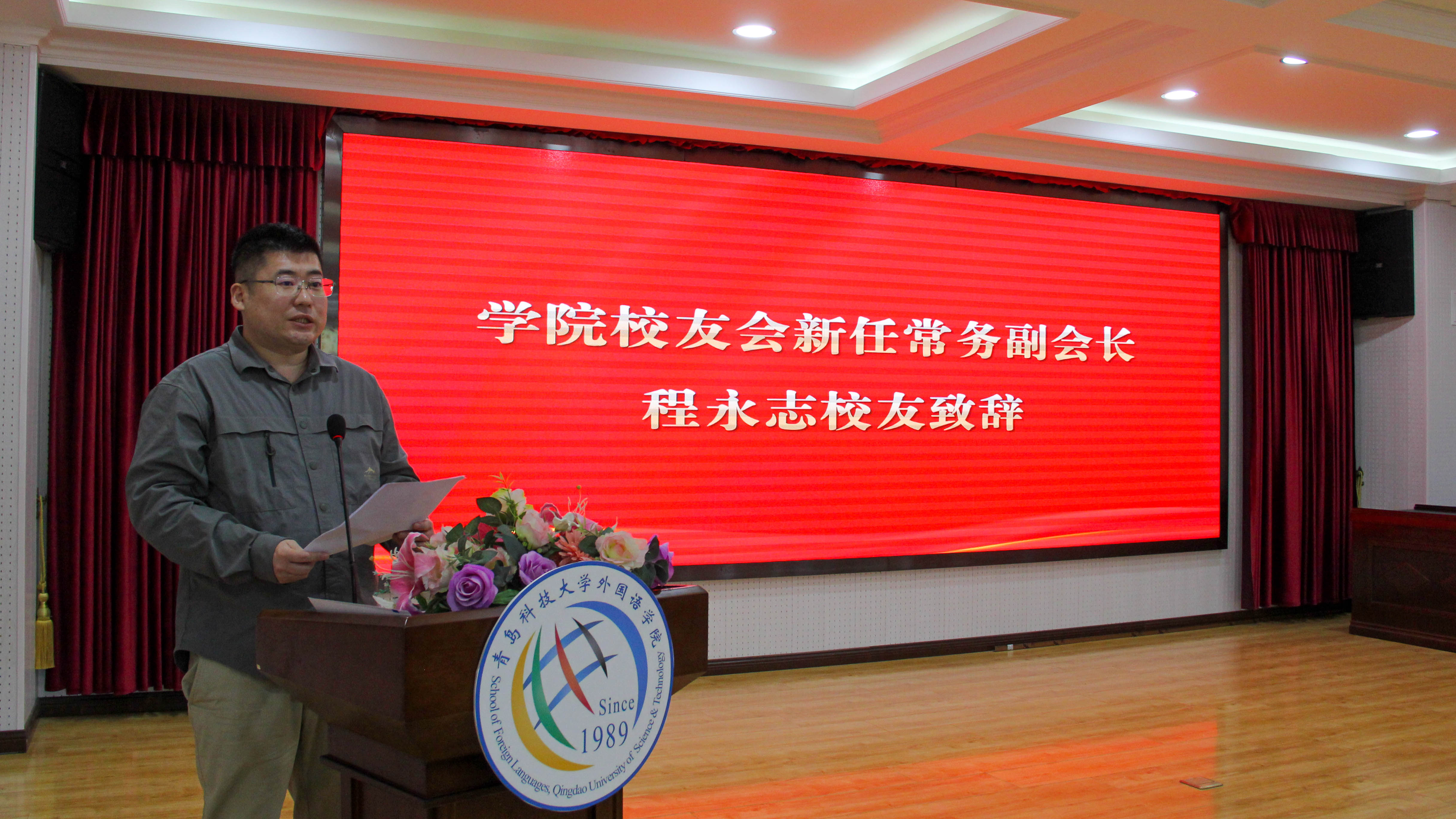 2007届校友、北京天成农业发展有限公司董事长、学院校友会新任常务副会长代表程永志致辞。程永志回忆了自己成长、创业历程,表达了对学院教育培养的感激之情,提出了校友会未来工作计划。校友捐赠仪式上,日本语NAT-TEST中国考试中心CEO、校友安晓东向学院捐赠鼎盛千秋。