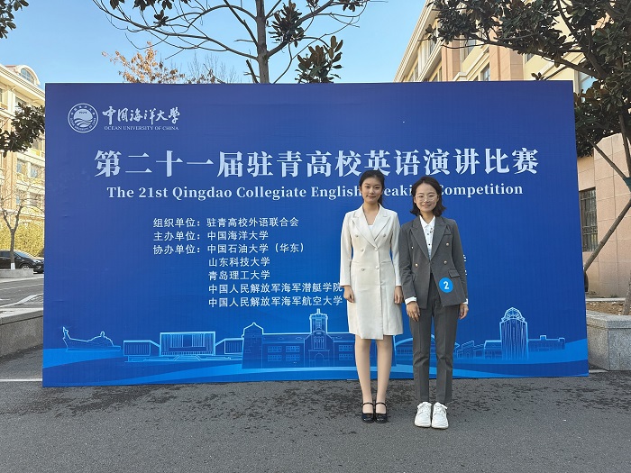 英语系陈思彤同学将个人青春理想与城市发展、时代使命相结合,生动诠释了“蓝色梦想”的丰富内涵,其自信从容的舞台风采与深刻独到的见解赢得了评委们的一致认可,最终斩获一等奖;英语系董佳欣同学紧扣主题,凭借扎实的演讲功底与富有感染力的讲述,荣获三等奖。学院曾曾老师被授予“优秀指导教师”称号。英语系杜璇老师作为评委代表对选手表现进行点评。